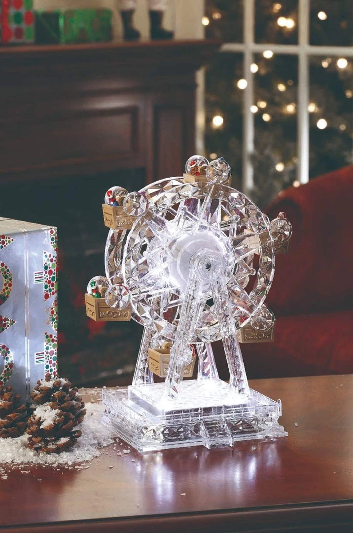 Reminisce about your favorite ride at the fair, with this musical Ferris wheel. A joyous touch to your holiday decor, this piece will be the focal point for many seasons to come. It plays 8 Christmas songs, and has motion.