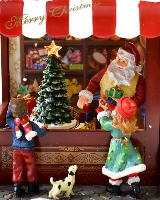 Elevate your home using this Brick Toy Shop. Plays 8 Christmas Songs, this beautifully crafted product provides a radiant glow to any room. Go ahead and light up your decor!