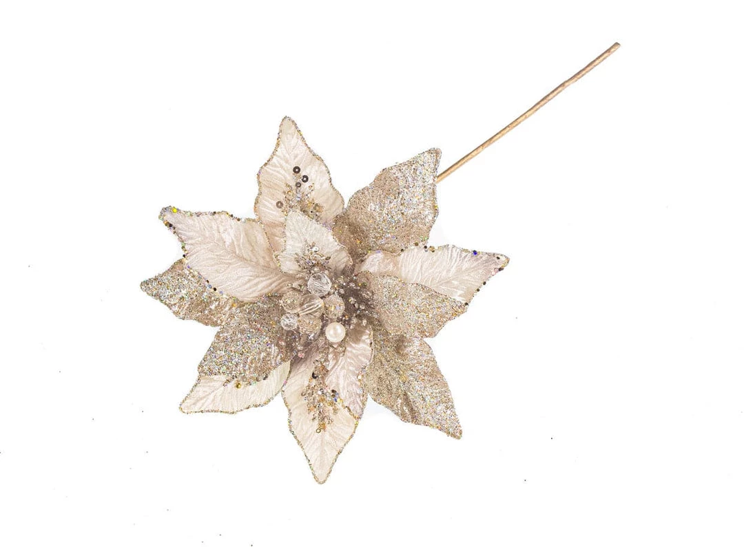 SKU: florals-7707672445174 Categories: Flowers, FLOWERS& STEMS, Stems & Picks Tags: Collection:New For 2022, Color:Platinum, Presale:PRE ORDER, Size:12", Style:Poinsettia Pick