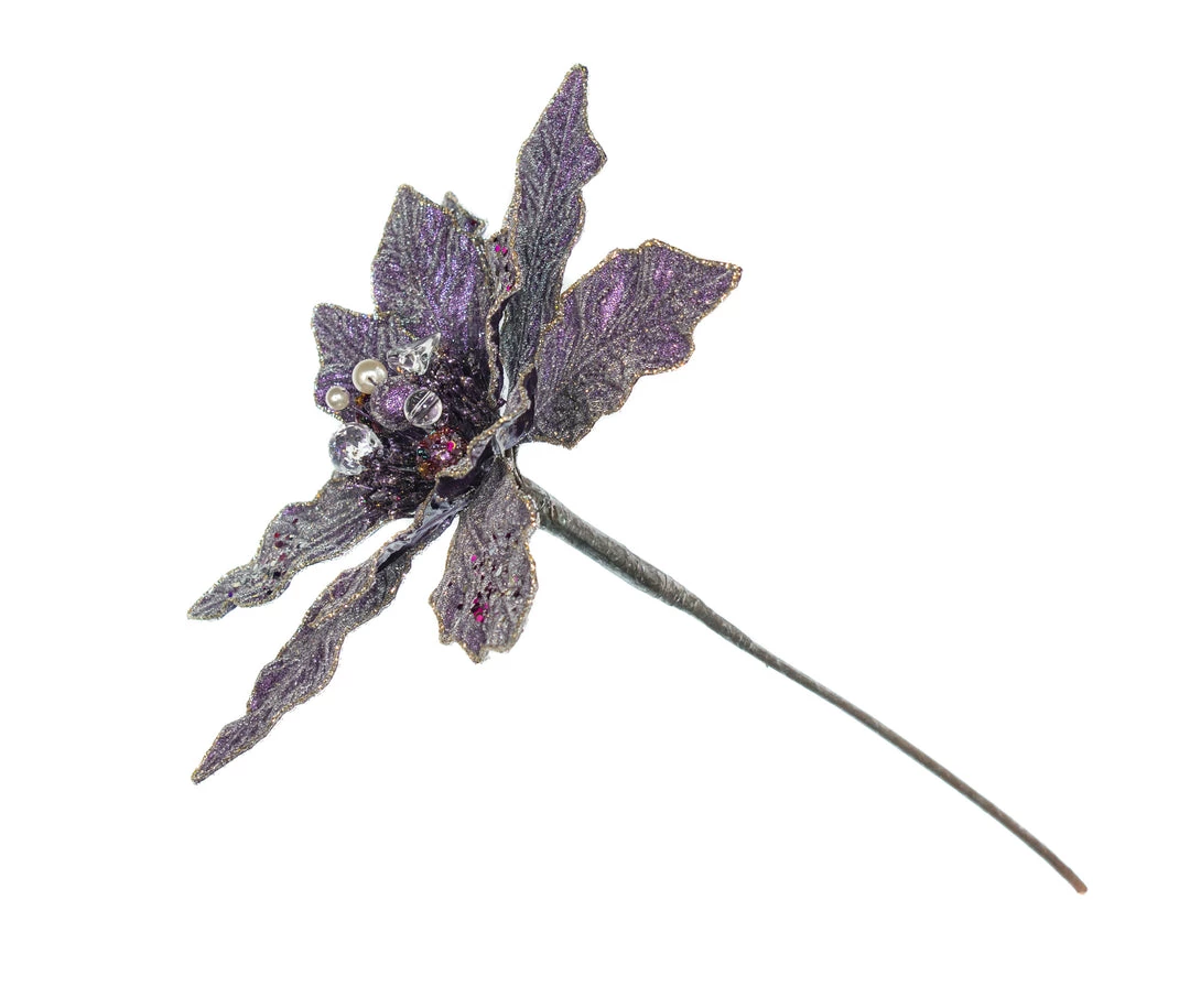 Add beauty and dimension to your tree this holiday season with this stunning glitter poinsettia stem. The soft sequined background, sparkly petals and gorgeous center makes this piece a must-have for your holiday collection.