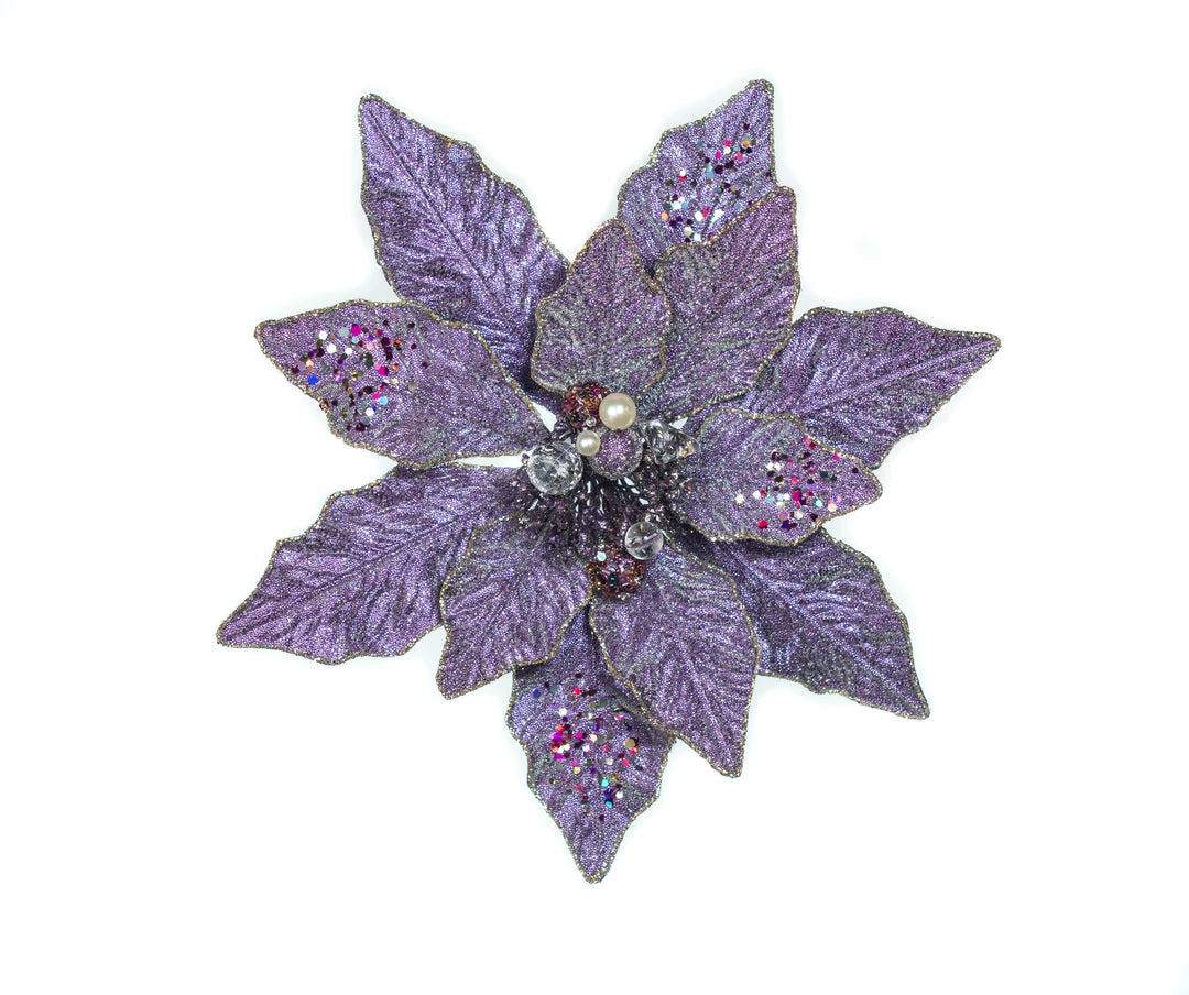 The Christmas Palace 12″ PURPLE GLITTER POINSETTIA SET OF 6
