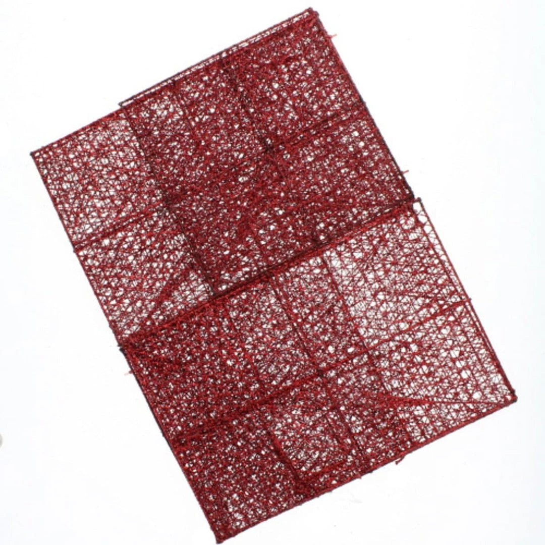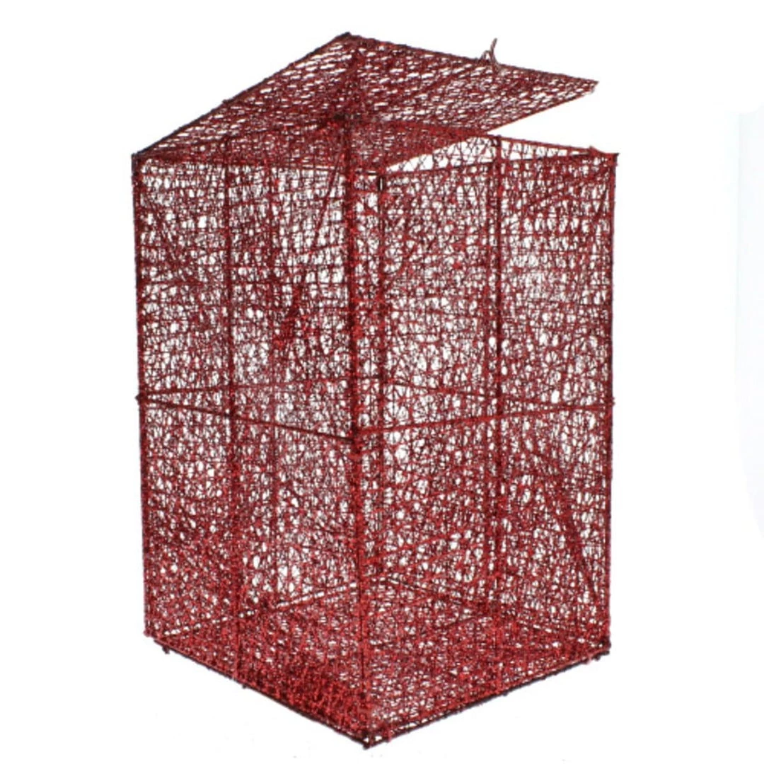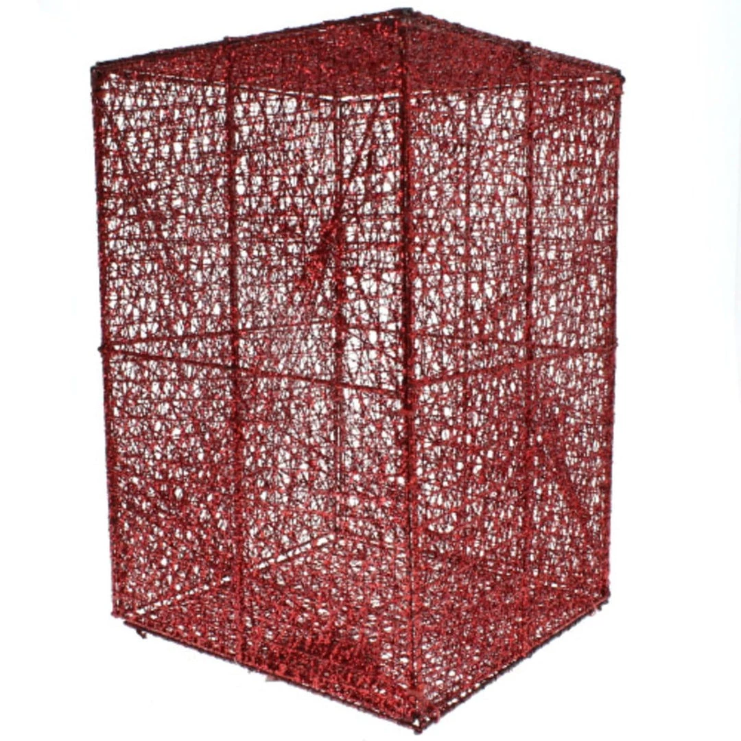 Glittery red mesh forms this box, the base for your decorating masterpiece. Try adding twinkling clear lights to the inside then a stunning gold ribbon and bow accented with greenery and flowers on the outside. Measures 12in H x 8in square and is made of wire and plastic.