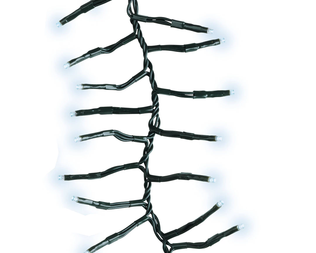 Cool White Cluster light string on green wire with 8 different twinkle functions featuring 456 LED lights.