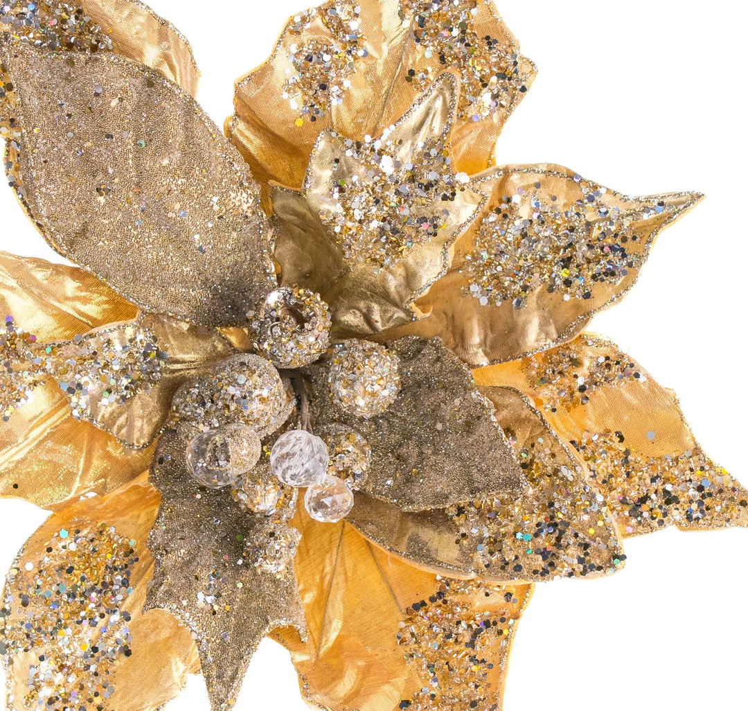 The Christmas Palace 20″ GOLD POINSETTIA SET OF 4 Flowers