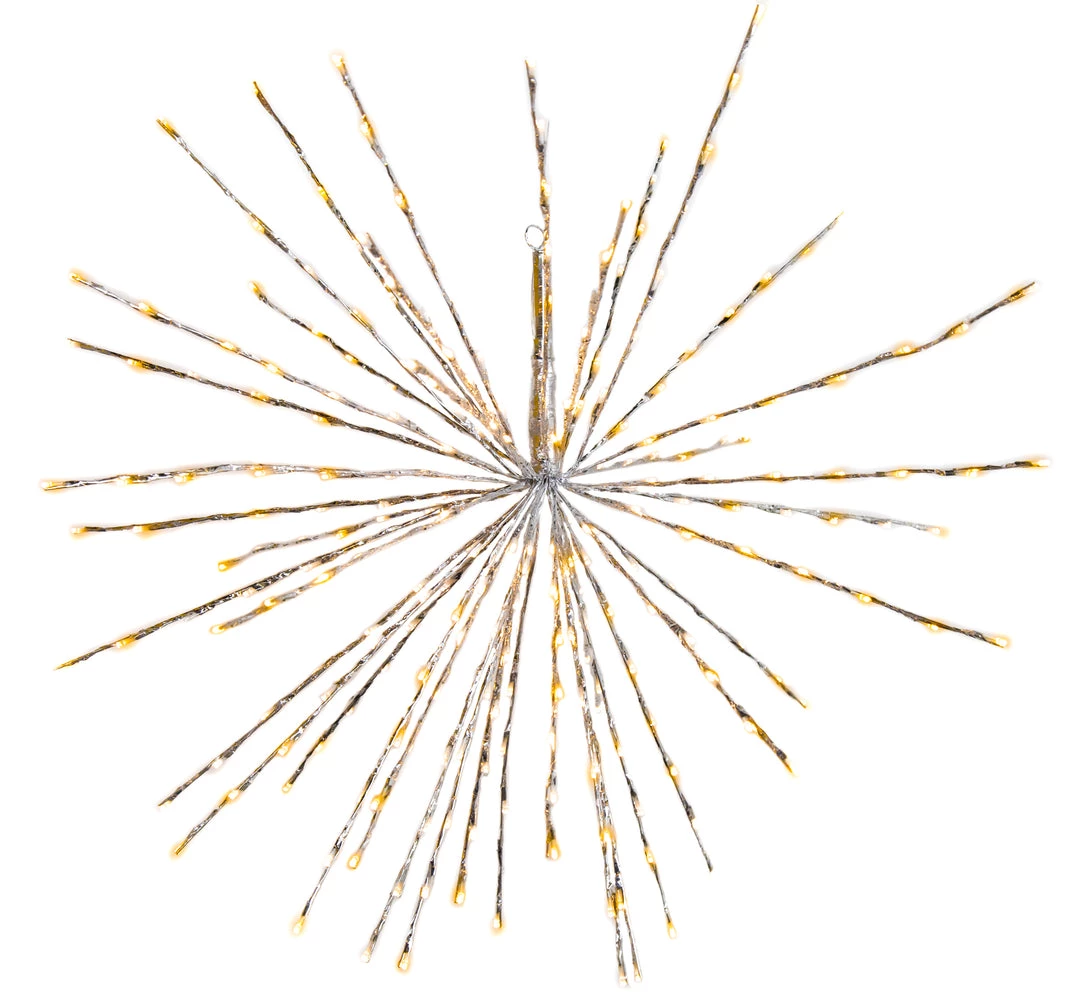 Our Polestar Light is a spectacular addition to any holiday! This gorgeous light features 280 warm white LED lights on metallic silver wires that can be spread out to create a lovely starburst shape. For added elegance, it come with a flashing function to give just the right touch of desired movement. Perfect to tuck into the branches of your Christmas tree creating points of interest, as a unique tree topper, or to hang from the ceiling for a festive lighting display from above! However you display them, they are sure to look magnificent!