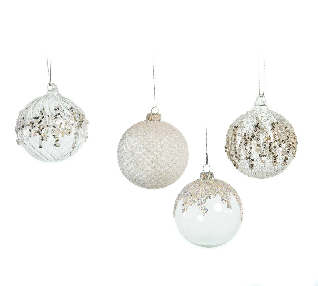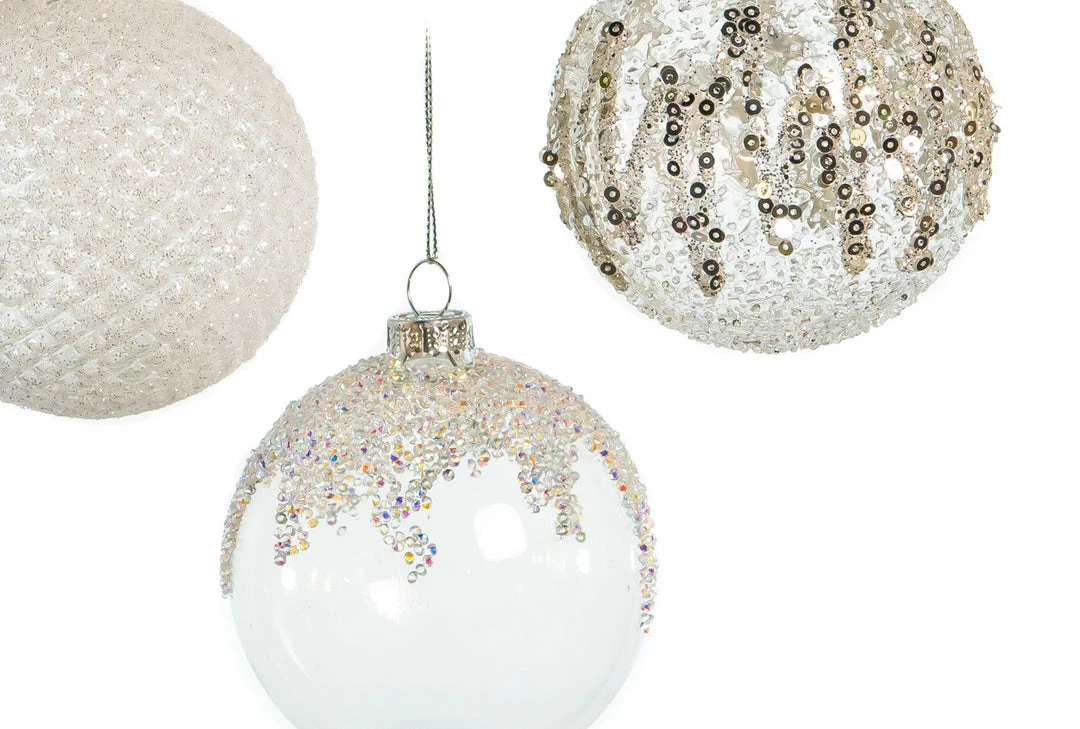 Give your holiday decor a touch of flair with this gorgeous set of glass ornaments. These 12 ornaments are designed with various designs and will add glamorous bling to your trees, wreaths, and holiday festivities. A beautiful set ready to compliment your home and Christmas decor with ease!