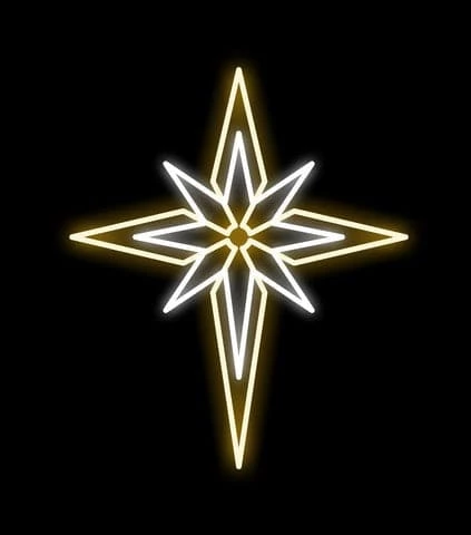 This warm white LED Bethlehem star with a cool white center will be the star of your Christmas decor! Add to your nativity scene or hang in a large window to create a magical light display. LED lights last longer and shine brighter so you can expect many years use with this beautiful motif!