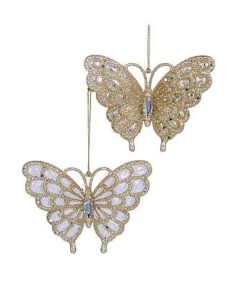 Add these stunning butterfly ornaments featuring platinum glitter and clear gems, this simple but elegant assorted butterfly ornament set is sure to add a stylish touch to your holiday tree.