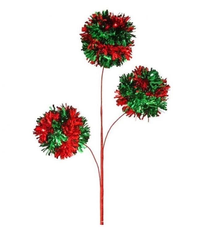 The Christmas Palace 30″ RED & GREEN TINSEL BALL SPRAY SET OF 6