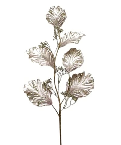 Look no further than our classy platinum leaf branch to add a stylish new dimension to your elegant tree, wreath, or garland. The calming sparkly leaves, touched with delicate glittery accents, allows this piece to pair well with gold, silver, or champagne tones. This beautiful piece is featured in our Platinum collection and will bring an elegant touch to your holiday decor.