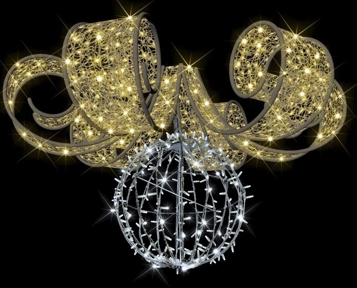 Elegant beauty meets rugged durability in this warm white & cool white LED ornament with curly bows that boasts versatility to spare. Adorn it with warm white golden ribbon and bows for a standalone decoration. Perfect to your adorning your home, office or venue at your next event.