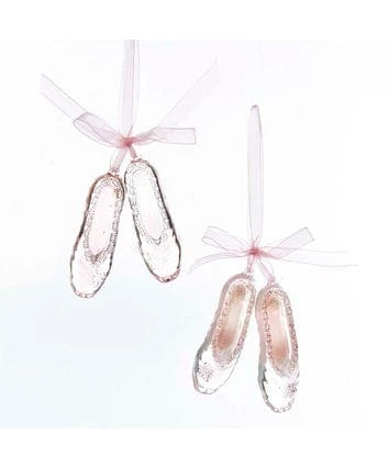 These clear pink ballet shoes ornaments from Kurt Adler are a great addition to your home décor! This assortment features ballet shoes in a dark pink color and a light pink color.