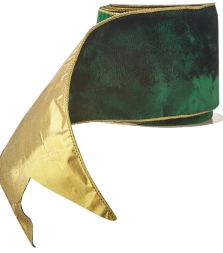 This gorgeous green velvet ribbon and has a luscious metallic gold backing! Perfect to use in your Christmas tree, the lights will reflect wonderfully against the gold and shine bright!