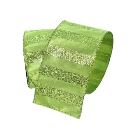 The Christmas Palace 4″ X 10YD LIME GREEN TAFFETA WITH GLITTER STRIPES Ribbon & Bows