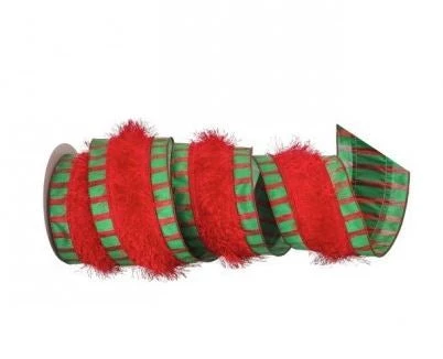 The Christmas Palace 4″ X 10YD RED & GREEN FRINGED CENTER RIBBON