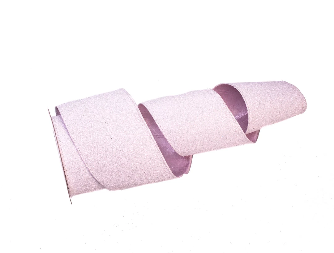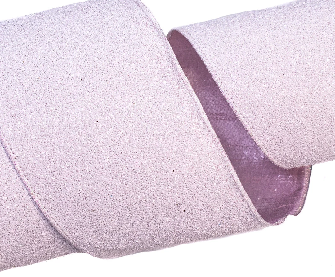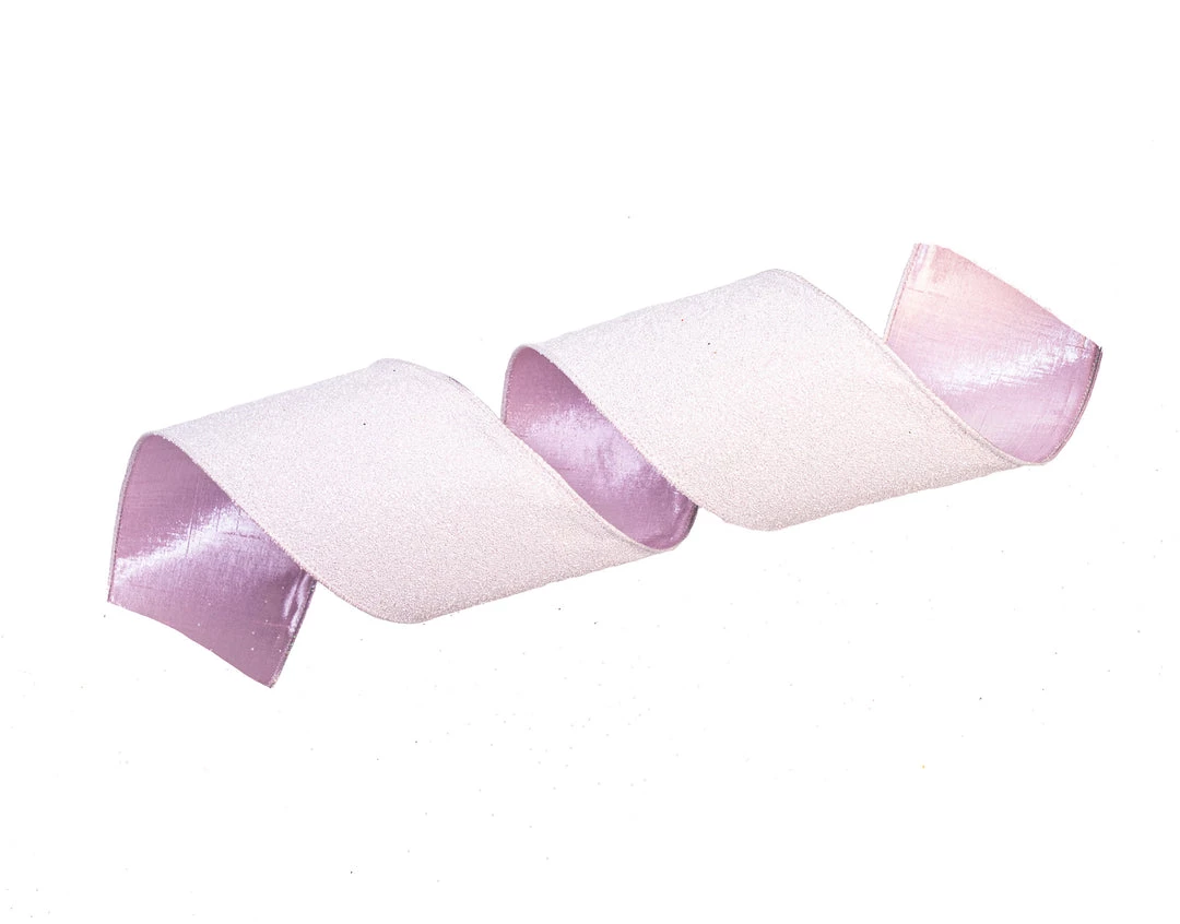 The Christmas Palace 4″ X 10YD WHITE GLITTER & PINK BACKED RIBBON