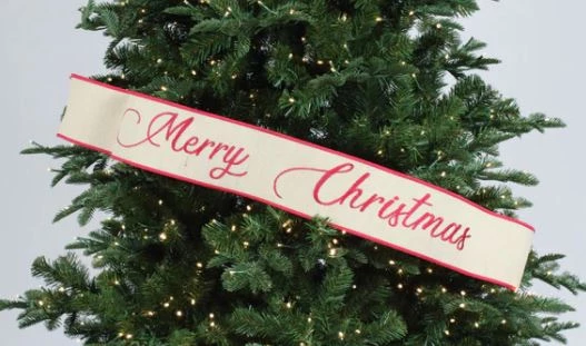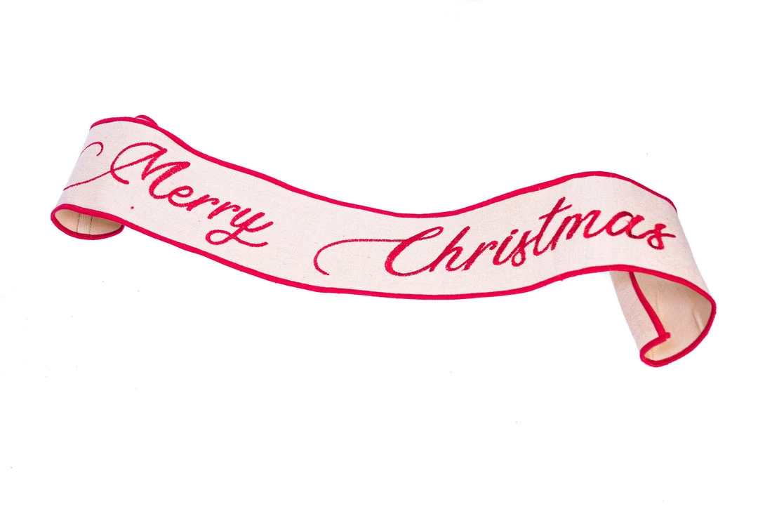 The Christmas Palace 4″ X 3 FT BURLAP “MERRY CHRISTMAS” BANNER RIBBON Ribbon & Bows