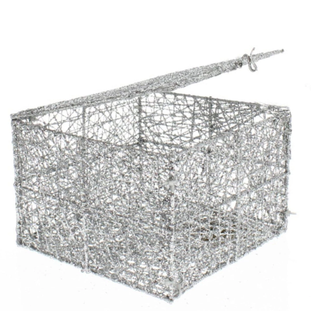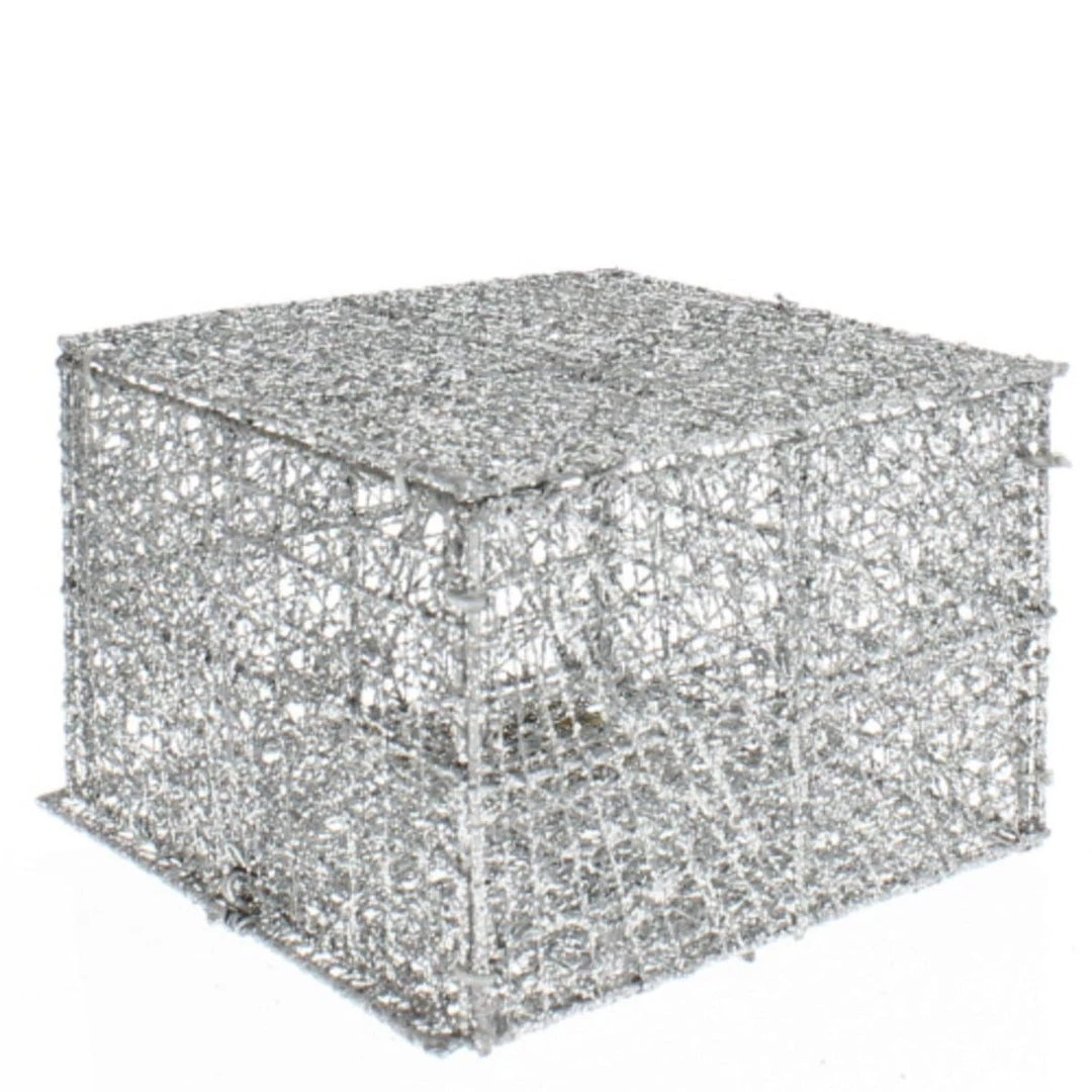 If silver is your color this year, you simply have got to have one of our glittery Silver Mesh Boxes. They can be decorated inside and out with anything from lights to greenery. Then add your touch to the outside and you instantly have the perfect centerpiece. Measures 4in H x 6in W x 6in L.