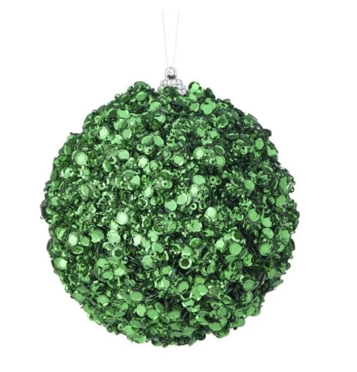Add a special dimension to your tree, with this sequin encrusted jewel ball ornament. Onlookers would be delighted by its beauty and size. Shatterproof adornments blend natural glass charm and luster with the unbreakable practicality.