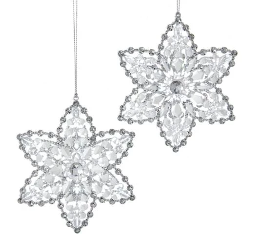 These white and clear snowflake ornaments from Kurt Adler are a festive addition to any holiday décor or Christmas tree. Included in this assortment are two uniquely designed white and clear snowflake ornaments, each with glittered accents.