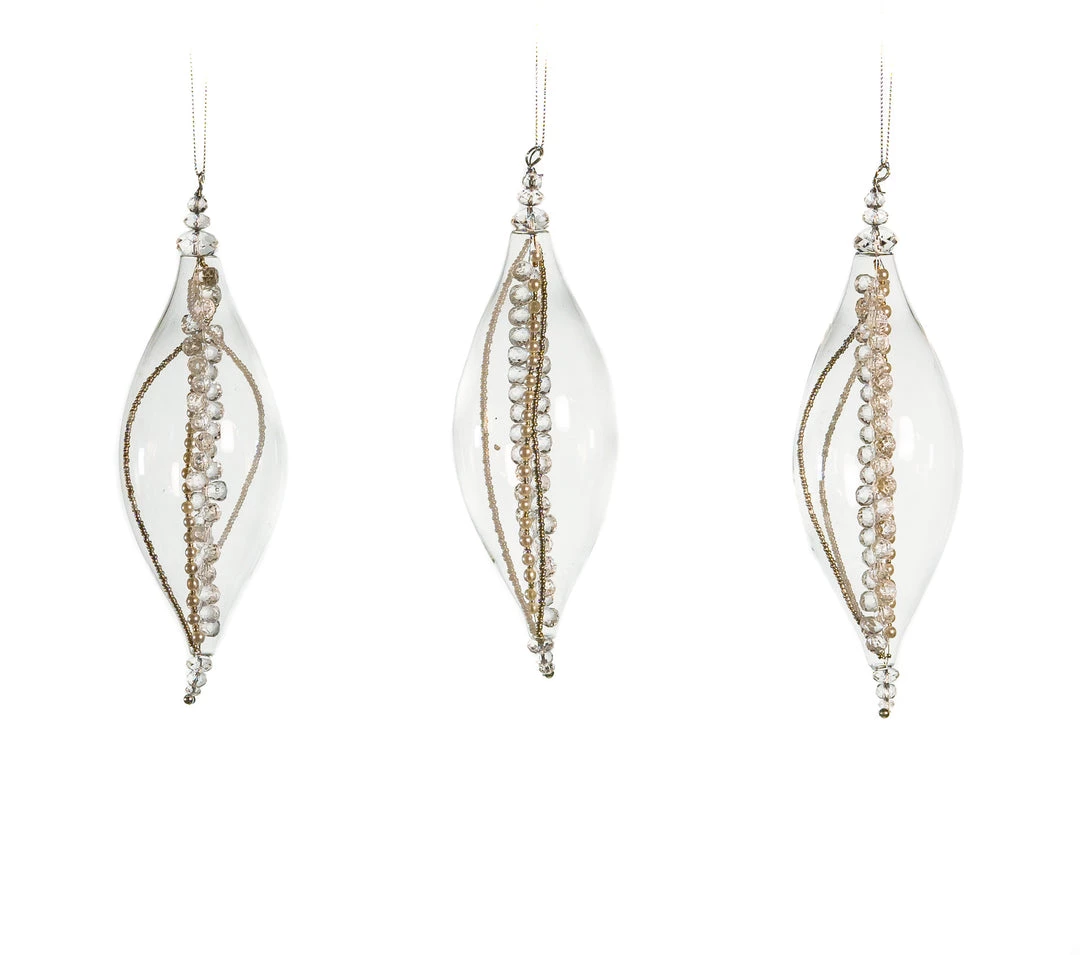 The Christmas Palace 6″ CLEAR GLASS FINIAL WITH BEADS INSIDE ORNAMENT SET OF 6