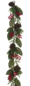 The Christmas Palace 6 FT HOLLY BERRY WITH PINE SPRIGS GARLAND UNLIT