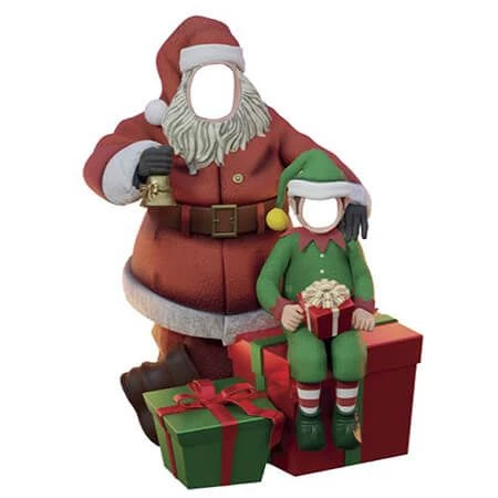 Let’s take a selfie! Our Santa with Elf Photo Op is the perfect addition to any commercial Christmas display or as a fun and festive prop for holiday parties. Featuring Santa standing behind a helper elf sitting on a pile of gifts, your guests can become these beloved holiday characters simply by placing their face in the opening! They will love creating magical moments and memories as they snap a photo for a charming keepsake full of holiday cheer!