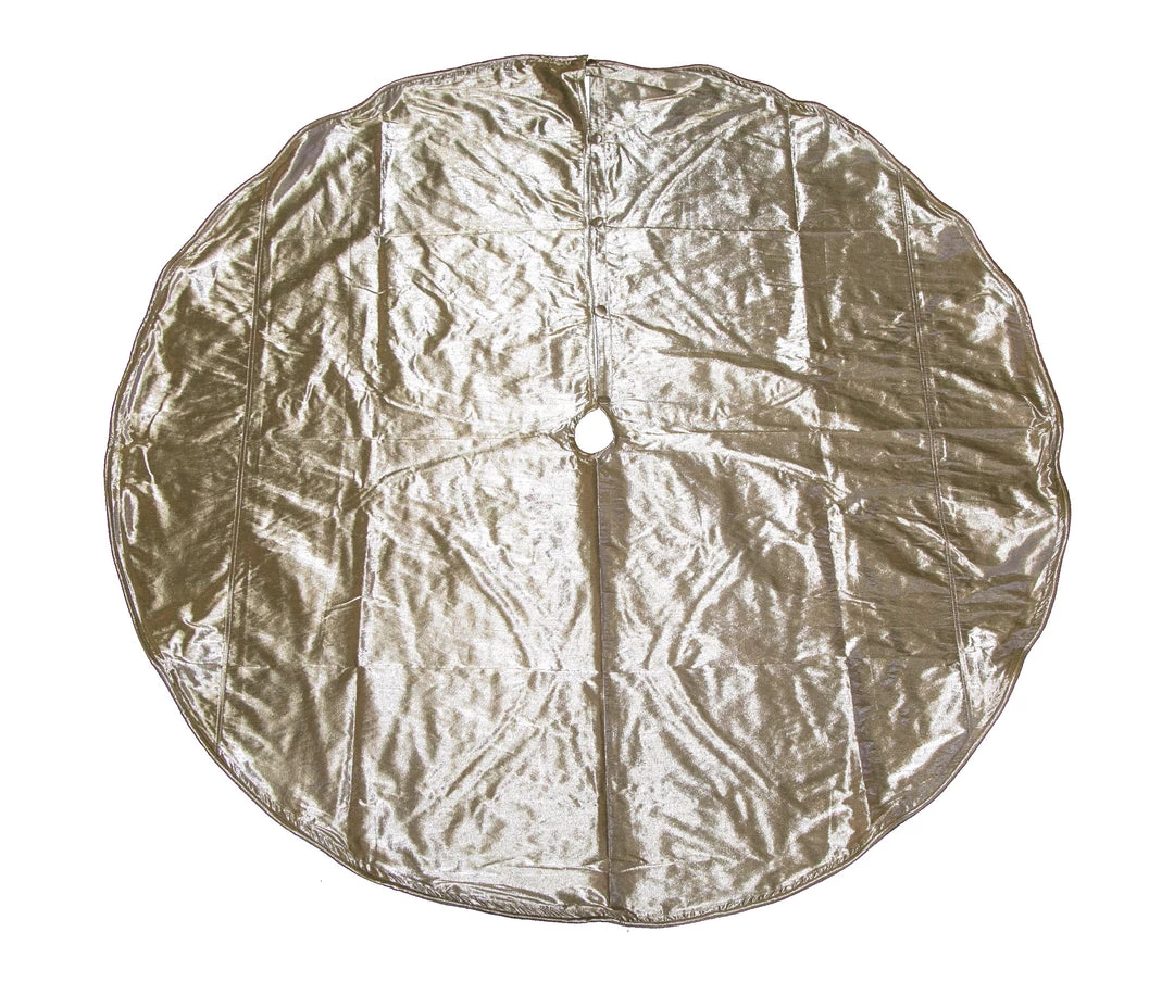 Give your holiday gifts an elegant backdrop with our Champagne Metallic Tree Skirt. Designed with shimmering fabric in a soft champagne gold color with fabric-covered button closure, giving a polished finish to this pretty skirt. The simple design and luxe fabric will make this tree skirt perfect for any Christmas theme!