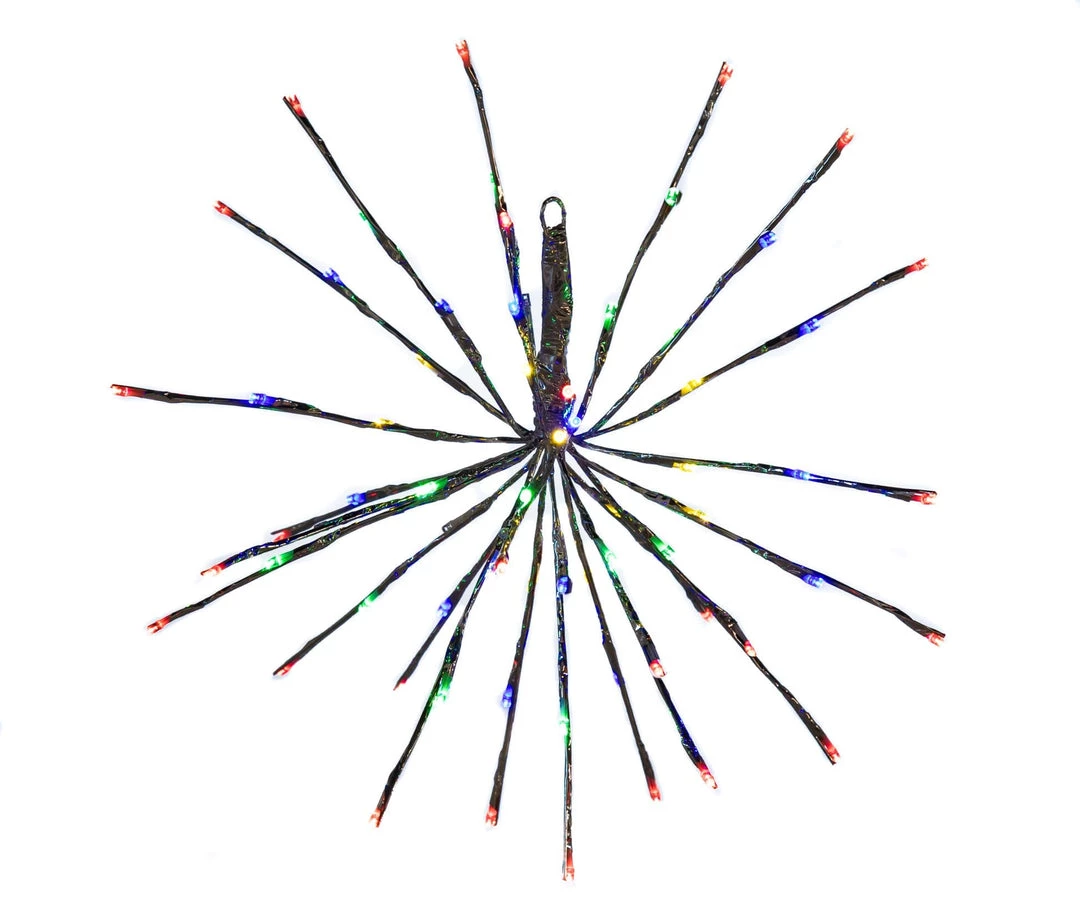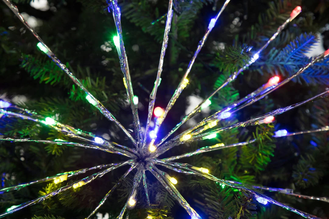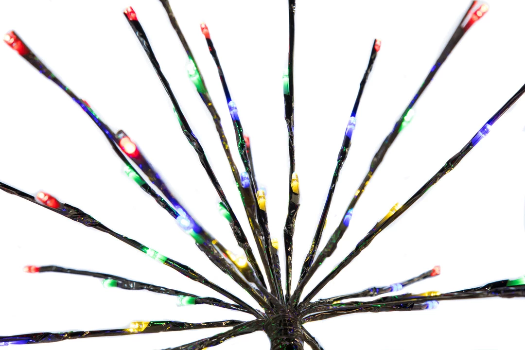 Our Polestar Light is a spectacular addition to any holiday! This gorgeous light features 72 multicolored LED lights on black metallic wires that can be spread out to create a lovely starburst shape. For added elegance, some of the lights softly twinkle. Perfect to tuck into the branches of your Christmas tree creating points of interest, as a unique tree topper, or to hang from the ceiling for a festive lighting display from above! However you display them, they are sure to look magnificent!