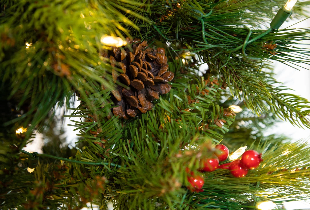 Create a picture perfect Christmas setting in your home or office with this evergreen Forest Berry fir tree. Easy and effortless, this artificial christmas tree boasts a traditional silhouette of seasonal foilage made up of easy-to-bend branches, accented throughout with faux pinecones and berries – all of which look incredibly realistic.