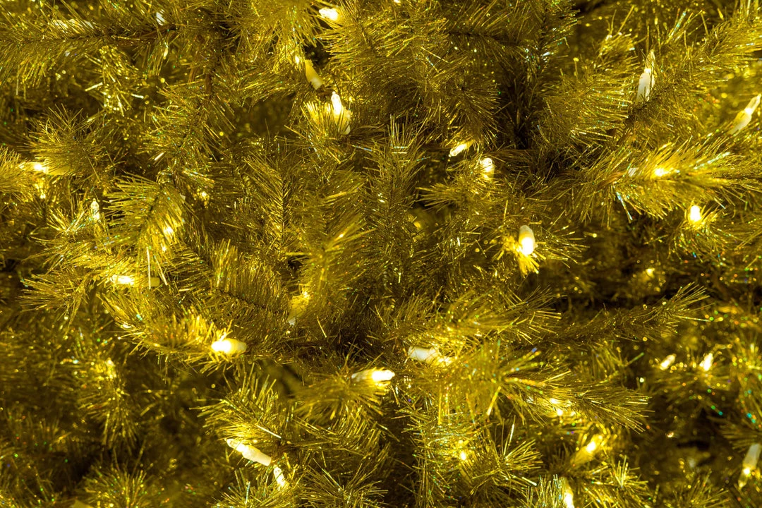 A full and eye-catching artificial Christmas tree makes for a gorgeous addition to any home this Christmas. Adorn this gold artificial tinsel tree with beautiful ornaments for the best festive impact in your home. This tree will be something that you will enjoy looking at year after year.