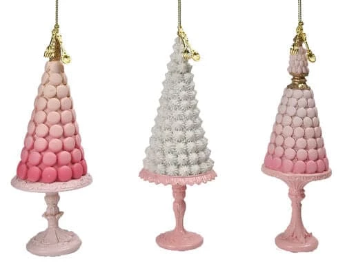 These sweet towers of pink & white macaron trees look delicate and delicious just as they might at a Parisian patisserie. Decorate any candyscape with this beautifully adorned set.