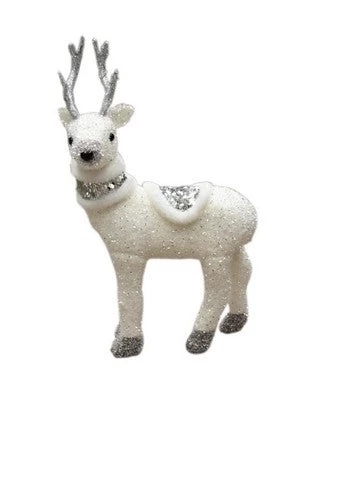 The Christmas Palace Deers, Bears & Swans 15″ WHITE GLITTER STANDING DEER
