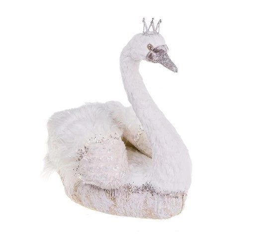 The Christmas Palace Deers, Bears & Swans 24″ WHITE WITH GOLD GLITTER SWAN