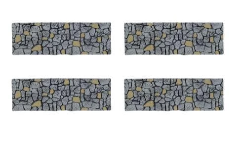 Using a variety of masonry colors, these limestone roads are carved to look dimensional will fit together to create a street, sidewalk or road in any Village display.