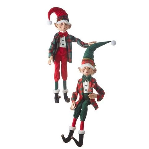 The Christmas Palace Elves 30″ RED & GREEN PLAID POSABLE ELF ASSORTED SET OF 2