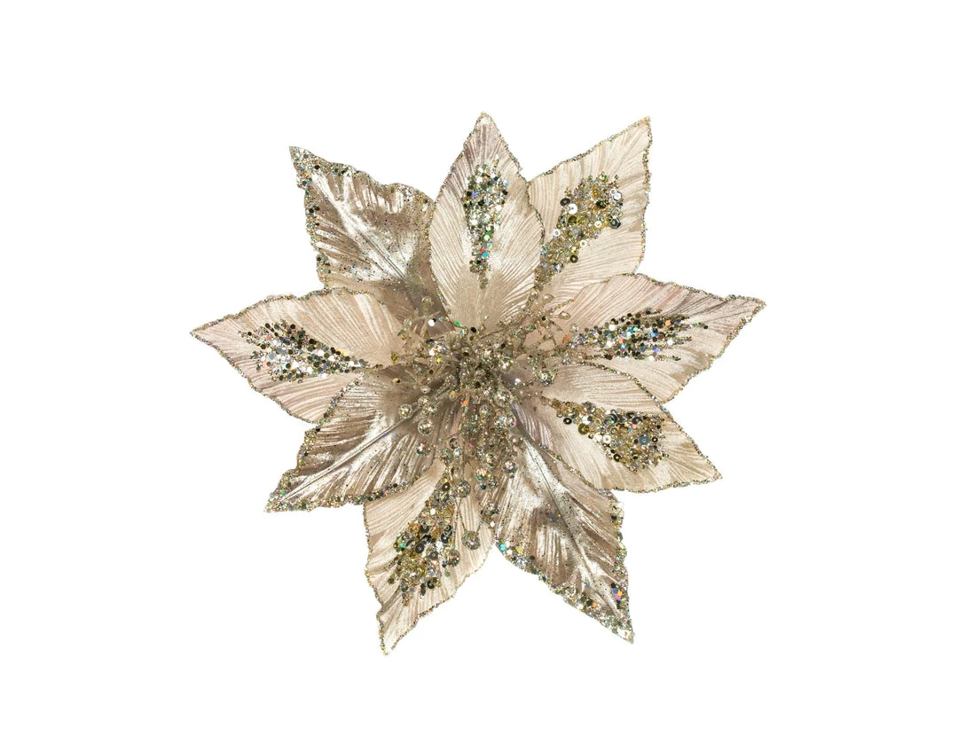 SKU: florals-7613678223606 Categories: Flowers, FLOWERS& STEMS Tags: Color:Platinum, Presale:PRE ORDER, Size:11", Style:Poinsettia