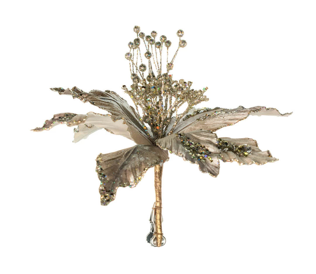 The Christmas Palace Flowers 11″ PLATINUM POINSETTIA CLIP SET OF 6