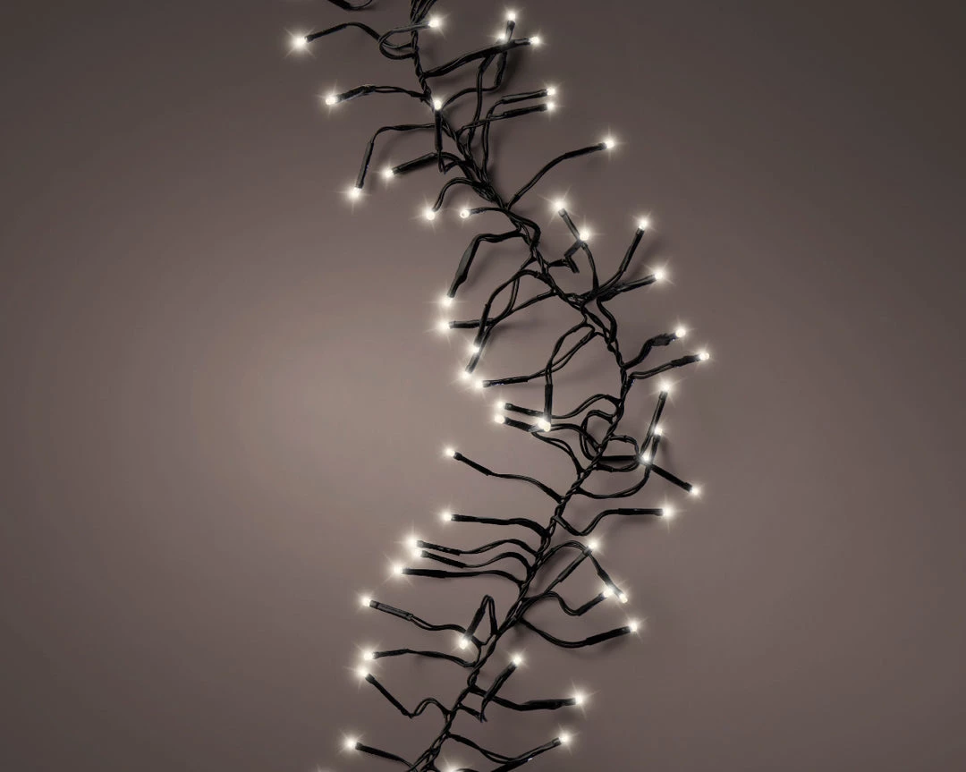 These lights are spectacular! These amazing, warm white, LED, cluster lights will stunningly illuminate your home, Christmas tree, or garlands. 1,512 long lasting LED bulbs are clustered very closely together along a 44.5′ wire and they come equipped with eight twinkle functions to choose from, creating a show-stopping display. Available in multiple sizes and colors to suit your personal holiday style!