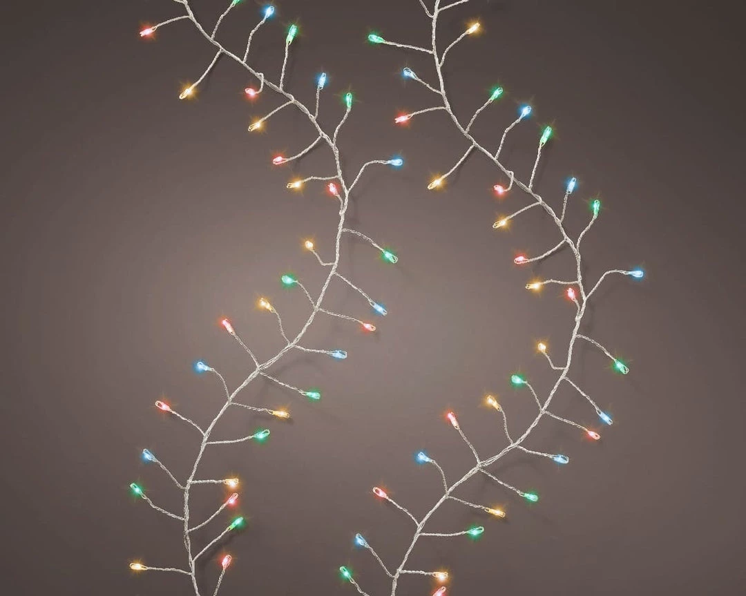 This 20 Ft Multicolor compact light string on a silver wire has 8 different twinkle functions featuring 480 Micro LED lights.