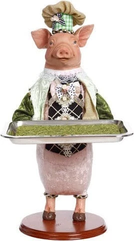 The Server Pig with Large Platter Figurine, measuring 19″, is adorned in vibrant and festive colors. The details on this figurine are impeccable. From the details on the chef hat and outfit to the silver platter, they have been meticulously created to deliver the highest quality product.