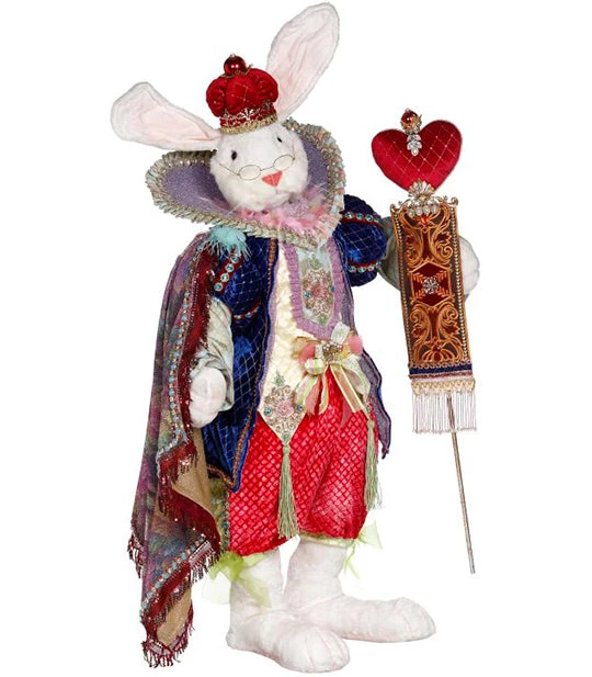 The King is here! Bring a bit of romance to your Christmas decorations with the Mark Roberts King of Hearts Santa. Standing at 49.5, He wears a dazzling red velvet crown with jewel trimming, and an impeccable cape. He features a septre with a giant heart.