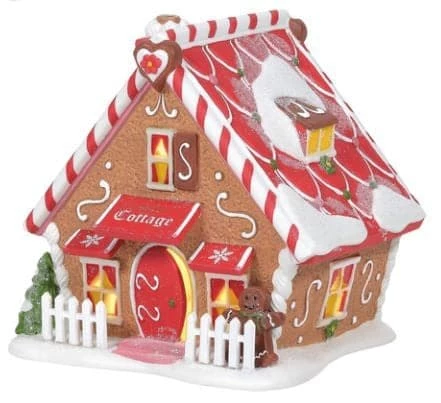 Welcome to Gingerbread Lane, a new sub-series of North Pole. Magical elves have built a sweet neighborhood inspired by the gingerbread houses they create for Christmas. Ginger’s Cottage includes peppermint trim, scrolled icing, and an oversized gingerbread man to turn up the charm on this cozy A-frame.