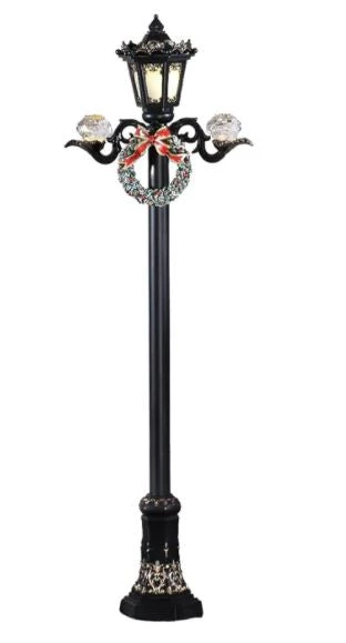 Set the scene for London at Christmas time with this 42-inch tall, battery operated street lamppost. Exquisitely detailed, the lamppost has a small wreath with authentic-looking red ornament accents affixed right under the lamp’s light. Made of Resin and Acrylic.