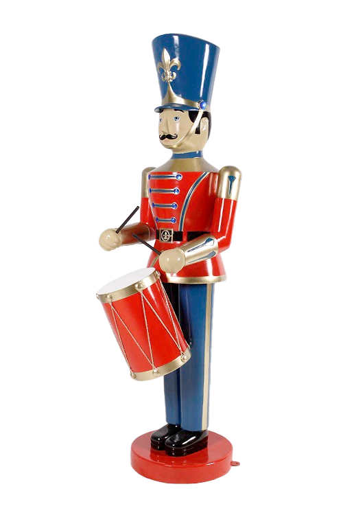 No proper marching band is complete without this Drummer! Made of highly durable fiberglass resin. It knocks down for easy transport and storage. Painted in lacquer automotive paint that really brings out bright colors while offering extra protection.