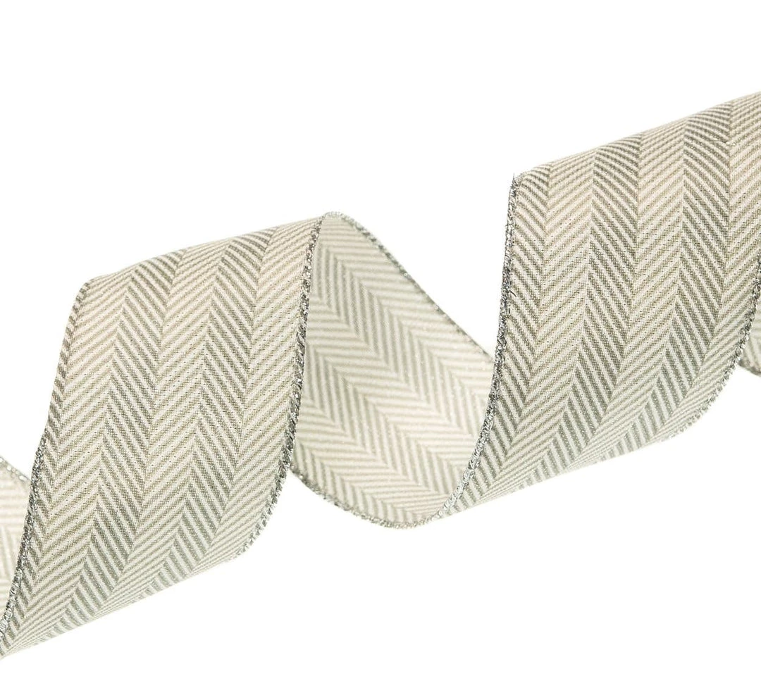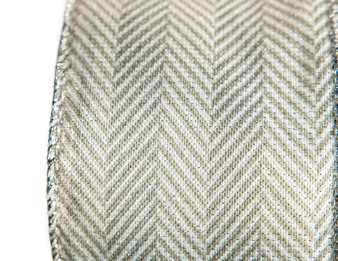 Add some holiday cheer with this grey toned chevron ribbon. Ideal for adding a touch of sparkle to your Christmas decor. Use it on wreaths, garland and more! The wired edge will ensure your bows & design hold their shape all season long.