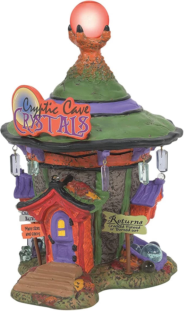 Customers can enter this business to buy a mysterious crystal. Some bring good luck, others can cast a spell. The piece is another circular building with a witch hat roof and LED color-changing crystal on top.