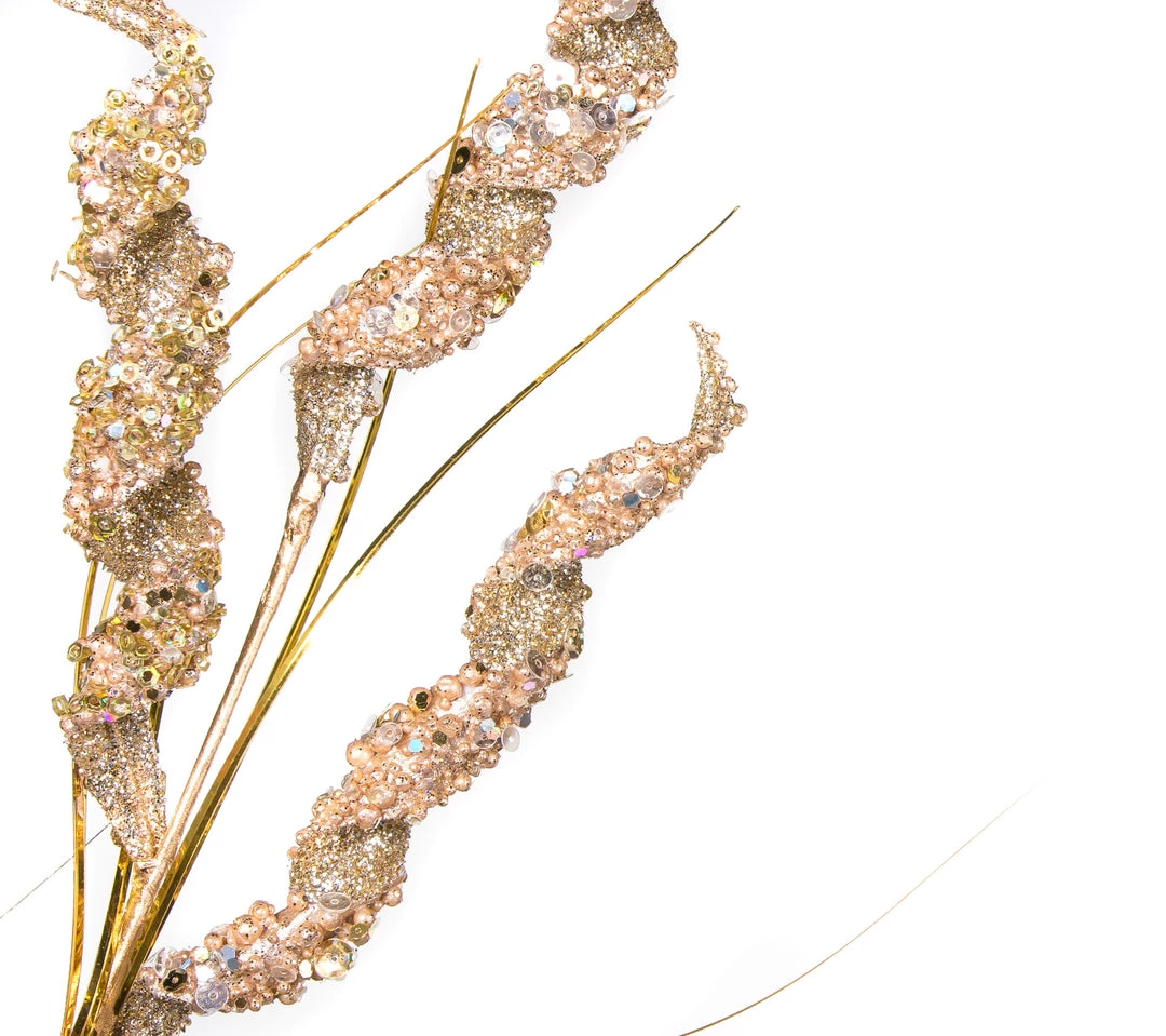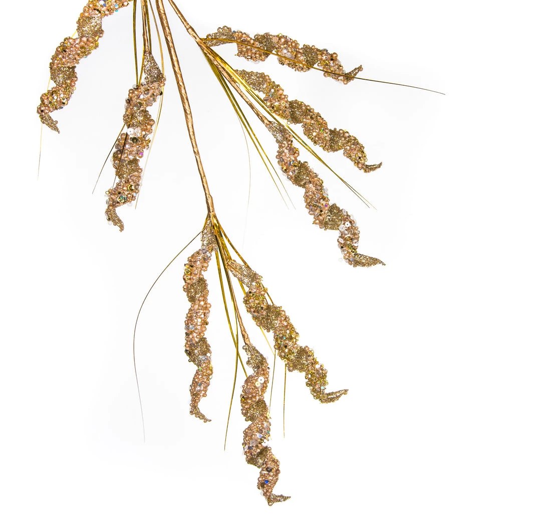 Add some sparkle and a new dimension of texture into your trees, wreaths, and garlands this holiday season. The rich gold sparkly stems delicately spiral out at different lengths adding a playful, yet beautiful feel.