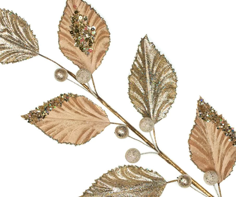 The Christmas Palace Stems & Picks 32″ CHAMPAGNE VELVET LEAVES SPRAY SET OF 6