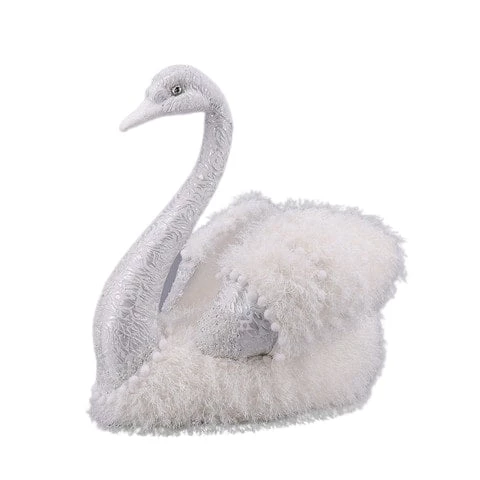 A true beauty. This delicate and elegantly designed swan features a lace body texture, along with faux feathered wings trimmed with small pom-poms. The overall look of this swan is flawless!